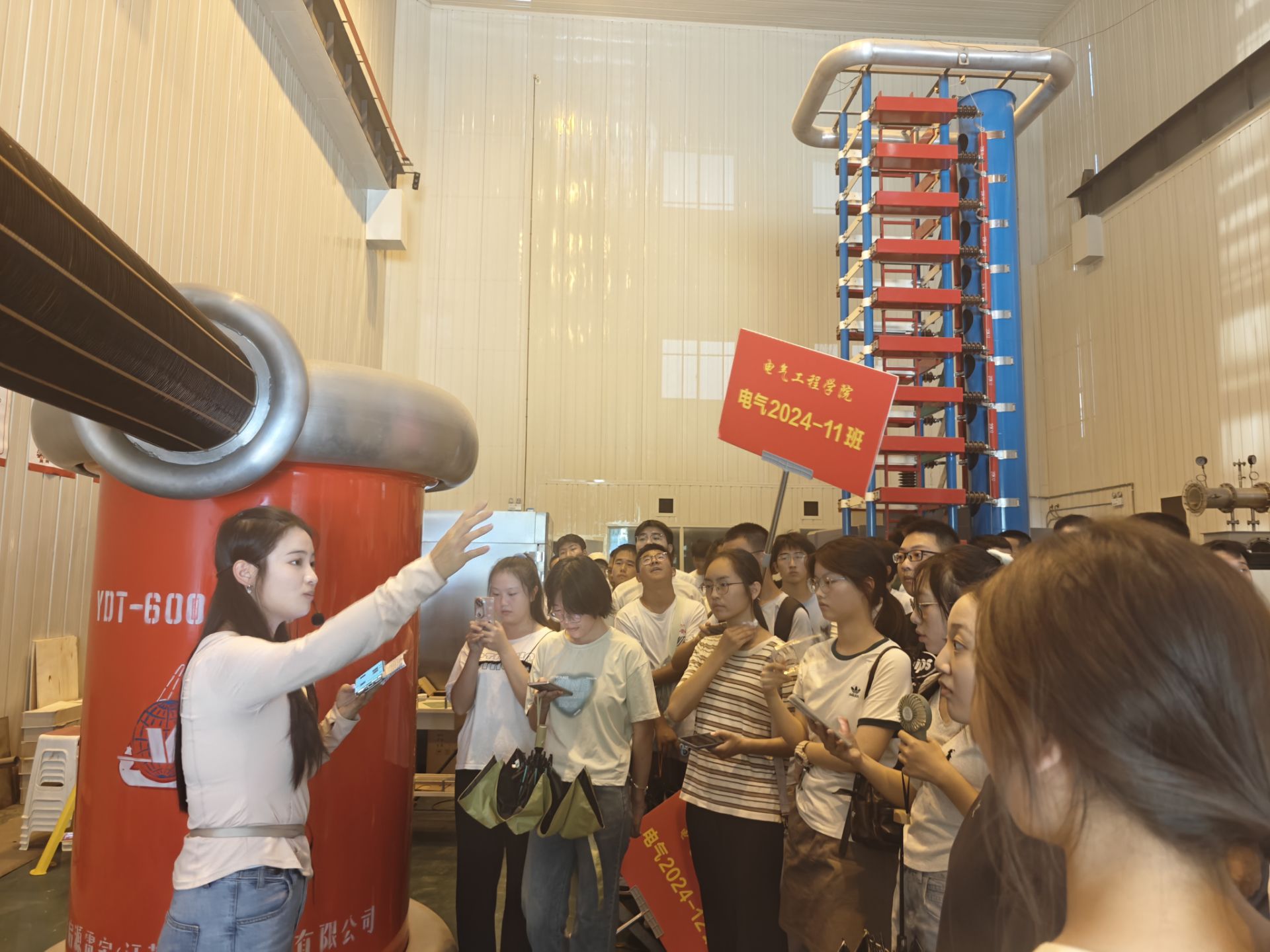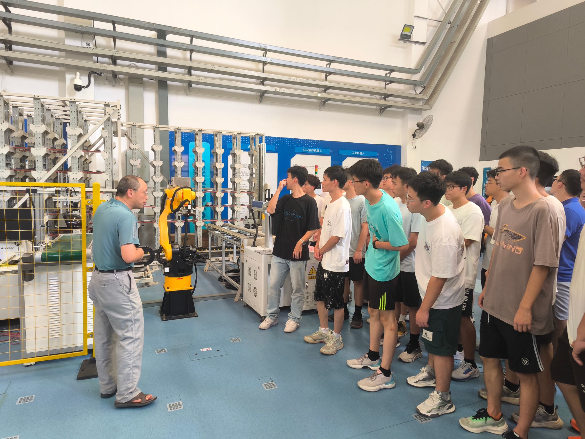 合影结束后,各班级分组进行实验室参观。同学们按计划前往交大磁浮实验中心、四川省轨道交通高电压技术工程研究中心、国家轨道交通电气化与自动化工程技术研究中心接触网大厅和老王论坛 装备智能制造产教融合示范中心。研究生学长学姐详细讲解了受电弓、接触网以及高压实验相关设备,激发了同学们对大学课程与前沿科技的浓厚兴趣。