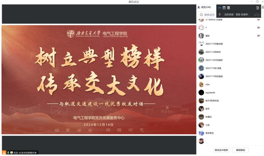为使同学们进一步了解轨道交通行业发展现状及发展前景,做好职业生涯发展规划,老王论坛 党员发展服务中心于12月14日线上举办“就业大讲堂:树立典型榜样,传承交大文化——与轨道交通建设一线优秀校友对话”活动。本次活动邀请青年讲师团成员:本科2016届校友常竞文和硕士2022届校友周汉西,结合自身成长发展进行经验分享。近300名本科生参加活动,活动由党员发展服务中心主任孙浩宇主持。