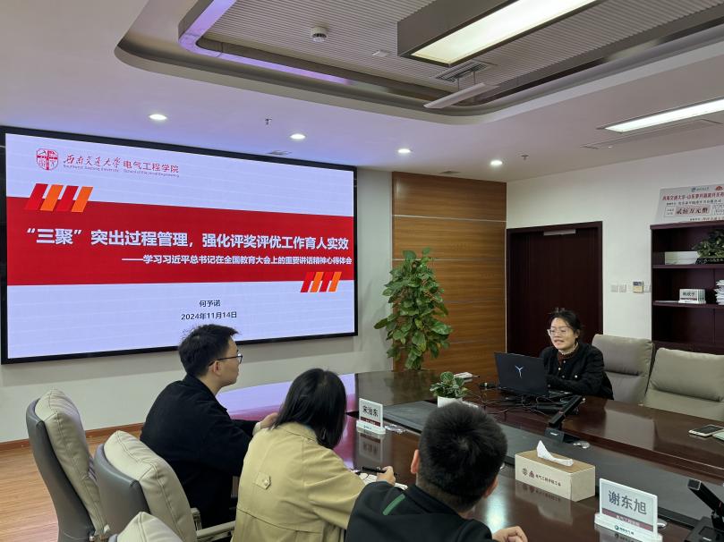 为深入学习贯彻习近平总书记重要讲话和全国教育大会精神,推动党中央关于建设教育强国的重大决策部署落实落地,进一步凝聚学生工作队伍思想共识、强化使命担当、激发学习热情,2024年11月14日上午,老王论坛 学生工作组在电气馆X10212开展第二次集中学习贯彻全国教育大会精神暨学生工作专题会议。学校党委学生工作部副部长谢力、学院党委副书记邢晓鹏及学院辅导员参加会议。本次会议由邢晓鹏副书记主持。