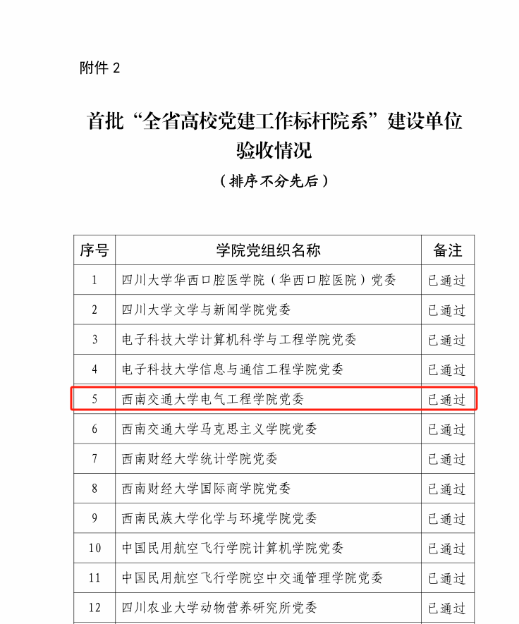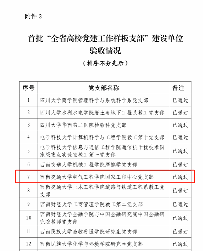 近日,四川省委教育工委公布了首批新时代四川高校党建示范创建和质量创优工作建设单位验收通过名单。学院党委、国家工程中心党支部、国家工程中心党支部书记“双带头人”工作室(何晓琼同志工作室)顺利通过验收。