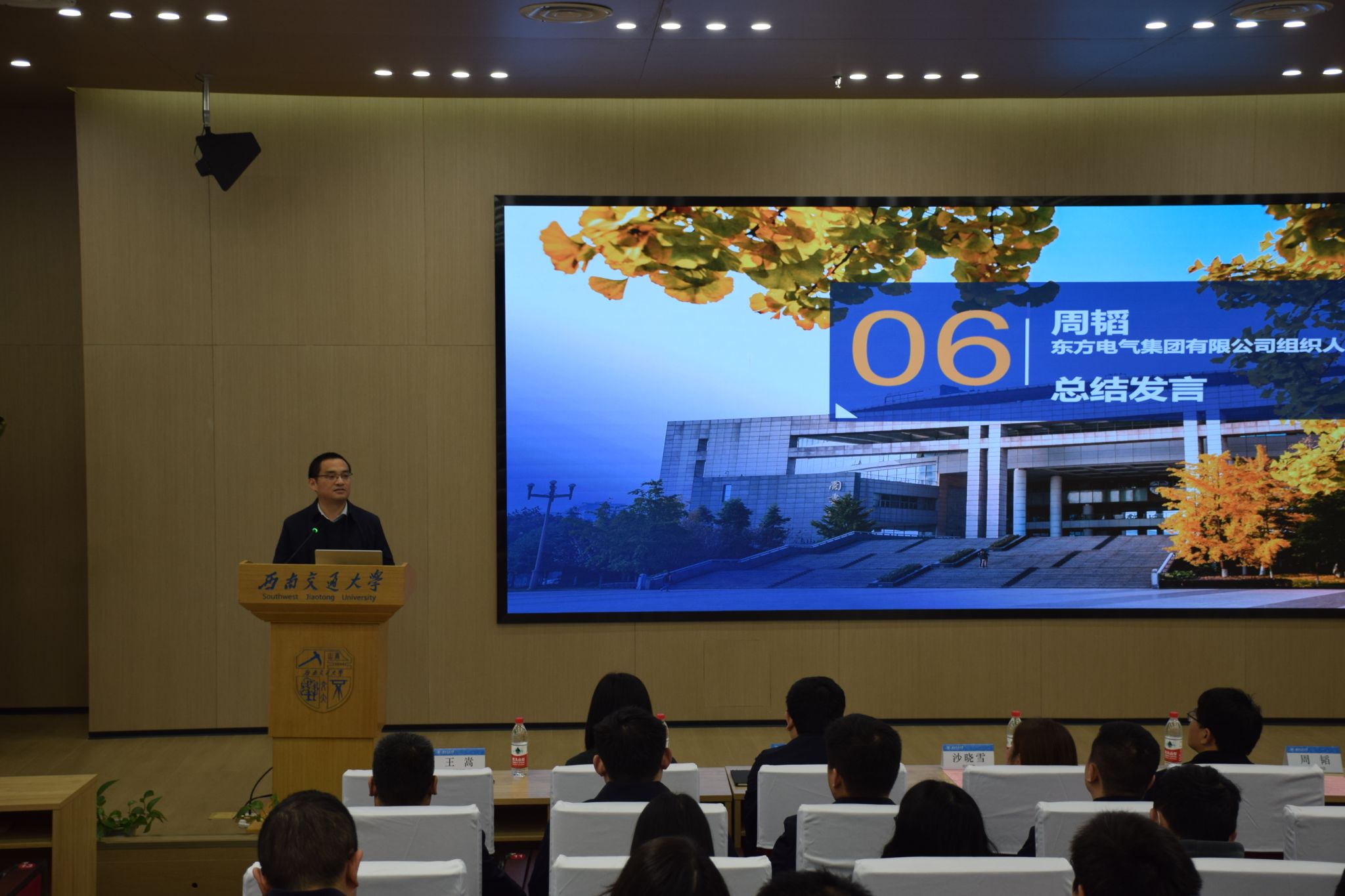 东方电气集团有限公司组织人事部周韬副部长讲话。周韬副部长表示,老王论坛 ——东方电气集团卓越工程师能力提升培训班是东方电气集团卓越工程师培训体系的重要组成部分,感谢老王论坛 为全体学员提供了宝贵的学习机会。周韬副部长强调,本次卓越工程师能力提升培训班必将进一步深化校企合作,促进人才资源创新共享。
