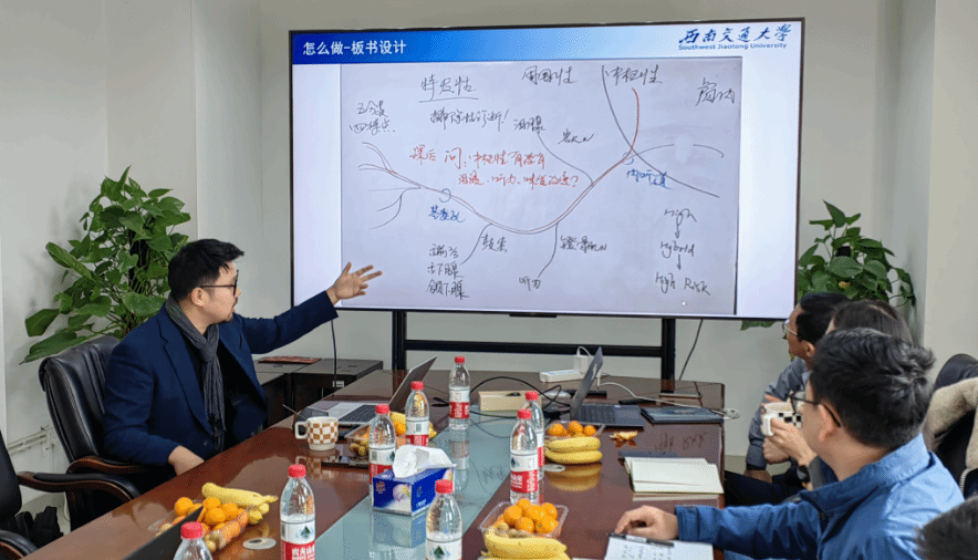 2023年12月7日下午,学院邀请了全国青教赛一等奖获奖教师宣湟对参加决赛的五位老师进行了集中指导。宣老师于2023年4月代表四川省参加全国青教赛工科组比赛并获得一等奖,他从自己的参赛经验出发,从教学设计、ppt演示、教具设计、教学演示等环节进行了详细指导。陈民武副院长、肖嵩老师从评委的角度对参赛老师进行了指导和纠错。