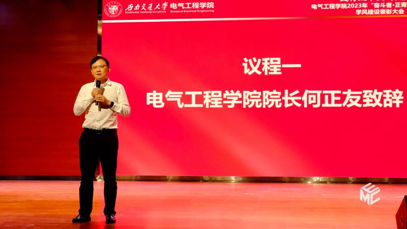 何正友院长在致辞中表达了对受到表彰的班级、同学和老师的祝贺以及对努力奋斗的全院师生的肯定。他指出,本次晚会的举办旨在激励青年学生学习“五四”运动的精神,做有理想、敢担当、能吃苦、肯奋斗的好青年。本次晚会的表彰环节更带来了榜样的力量与示范,对此,何正友院长向全院师生提出了三点希望:一是胸怀祖国,志存高远,做社会主义现代化建设的奋斗者;二是脚踏实地,增强本领,做社会主义现代化建设的实践者;三是开拓创新,敢作敢为,做社会主义现代化建设的开拓者。最后,何正友院长预祝本次晚会顺利举行。