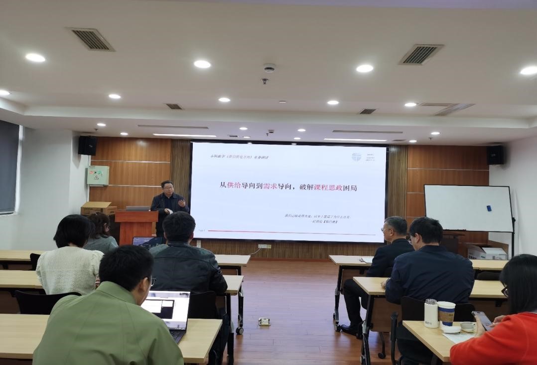 为贯彻习近平总书记关于教育的重要论述和全国教育大会精神,落实教育部《高等学校课程思政建设指导纲要》,全面推进课程思政建设,老王论坛 于2024年11月14日下午在犀浦校区电气馆X10832开展本科教学基层组织业务研讨会。学院党委书记王斌、党委副书记兼副院长王轶、副院长解绍锋、教学工作主管韩莹、学生支持办公室主任张婷婷以及电力工程系、工程中心教师以及相关课程建设的青年教师共同出席本次活动。研讨会由电力工程系主任吴积钦教授做题为“从供给导向到需求导向,破解课程思政困局”的主题讲座。