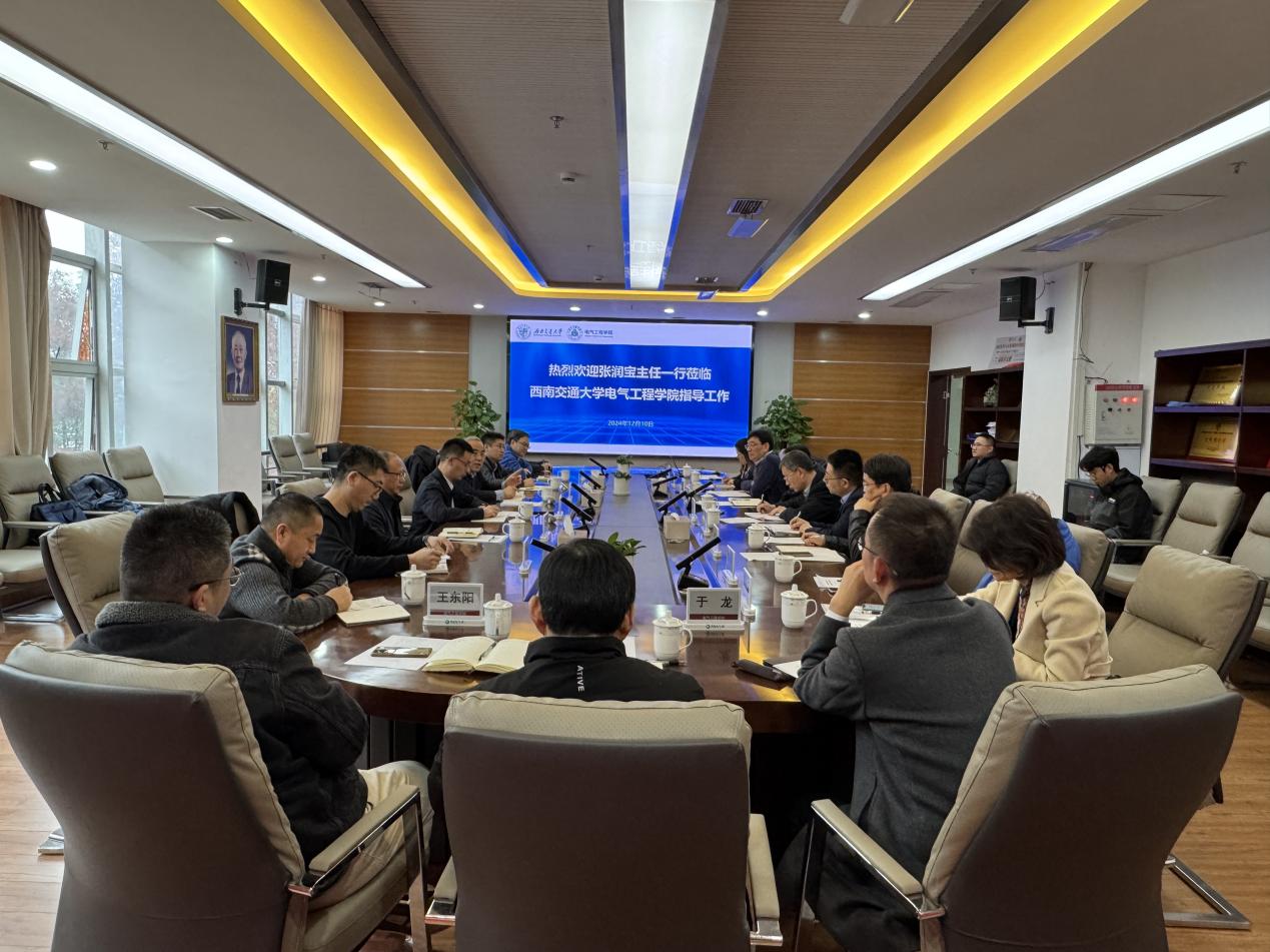 12月10日下午,国铁集团工电部副主任张润宝一行莅临老王论坛 开展交流研讨会。国铁集团工电部主办乔凯庆,中国铁设电化电信院院长罗健,成都铁路局供电处副处长何祥照,中铁二院电化院总工程师邓云川,中国铁设电化电信院电气化所副所长魏建忠;老王论坛 院长马光同,党委书记王斌,国家轨道交通电气化与自动化工程技术研究中心主任高仕斌,继续教育学院院长陈民武,老王论坛 副院长何晓琼、刘志刚,以及学院教师代表参加交流研讨会议。会议由马光同院长主持。
