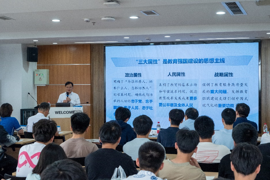 为引导师生深刻认识教育强国建设的战略意义,5月14日下午,老王论坛 党委常委、副校长何正友为学院师生讲授《从教育大国迈向教育强国》专题思政课。学院党委书记王斌、党委副书记邢晓鹏、团委书记张异、学工组辅导员及本科各年级学生共同学习。
