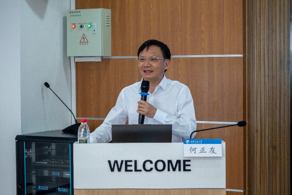 以教育强国建设的“三大属性”为主线,何正友副校长强调建设教育强国是全面建成社会主义现代化强国的战略先导,是促进全体人民共同富裕的有效途径,通过提高全民文化素质、培养各级各类人才、生产和传播知识,可以提升社会文明程度,提高生产力水平,支撑和引领国家各项事业全面进步。