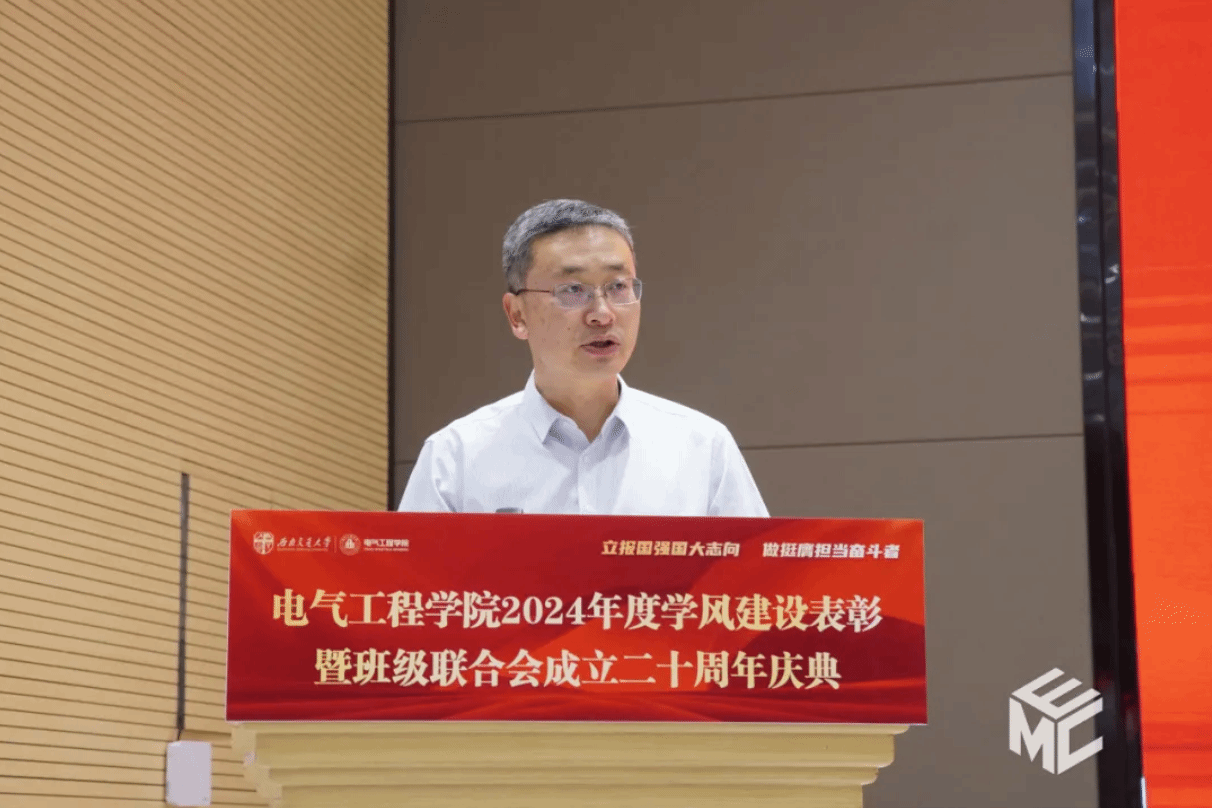 王斌书记作总结发言,他向受表彰的先进集体和个人表示祝贺,并高度肯定了历届班联人的贡献。他表示,电气班联奖学金凝聚了校友的感恩之情和班联文化积淀,学院将通过专项管理、实践桥梁和激励机制,充分发挥其育人效能。面向未来,王斌书记提出三点希望:现任班联人创新引领,往届班联人经验传承,全体电气人践行使命,共同深化学风建设。最后,他表达了对校友事业和学子成长的美好祝愿,希望班联再创辉煌!