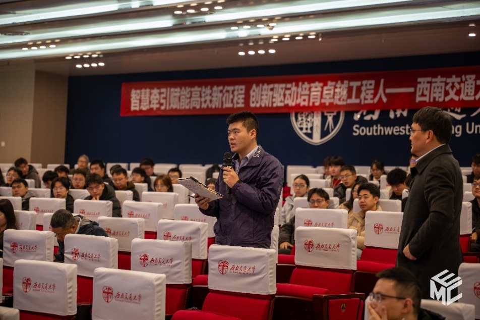 在上午的互动环节中,现场气氛热烈,参会的工程硕博士生们展现出了极高的求知欲,纷纷举手提问。从“新技术落地的工程难点”到“未来职业生涯的规划路径”,同学们的问题犀利且务实;专家们则结合丰富的工程经验倾囊相授,耐心解答,现场呈现出一幅“导学相长、产教共融”的生动画面。