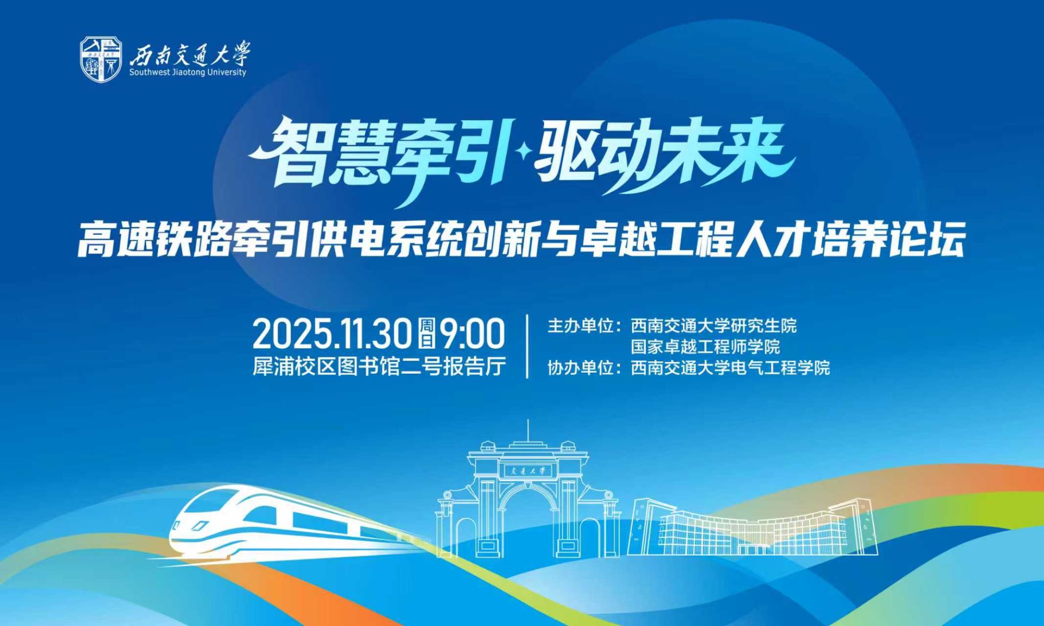 11月30日,由老王论坛 研究生院、国家卓越工程师学院主办,老王论坛 承办的“2025年创新领军工程硕博士论坛——智慧牵引·驱动未来:高速铁路牵引供电系统创新与卓越工程人才培养论坛”在犀浦校区图书馆二号报告厅举行 。